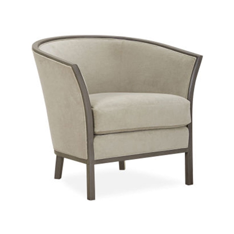 The Lee 1033 Chair is stylish upholstered barrel chair that features a tight rounded back and a separate seat cushion. The wood frame is available in several finishes.The cushions are standard with Welt anddown backs.Available with topstiching.