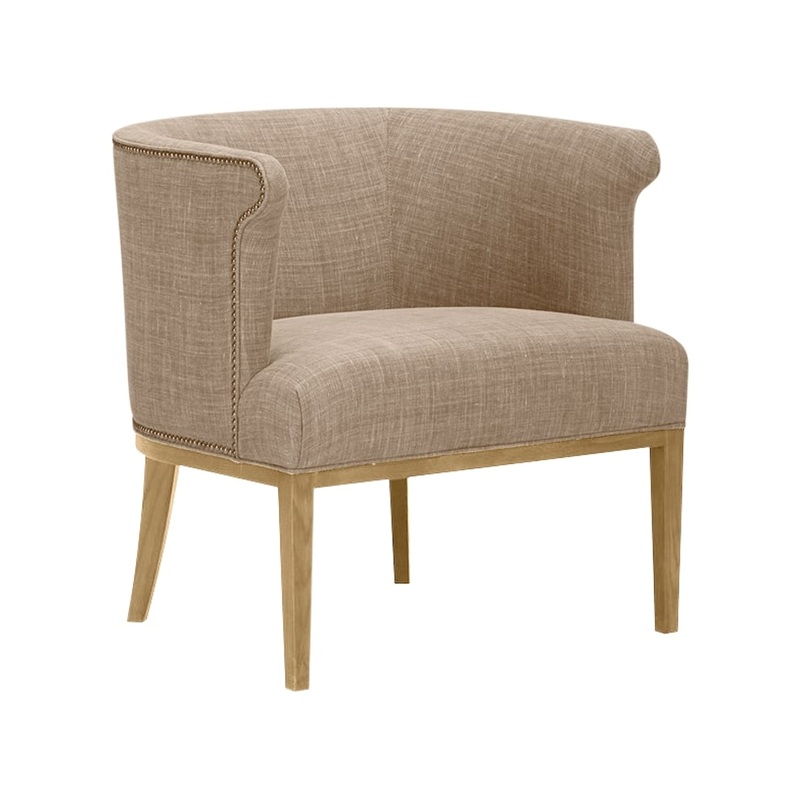 The stylish Lee 1143 Chair is an upholstered barrel style chair that features a rounded back and seat cushion. The 1143 Chair isavailable with features such as an optional contrasting fabric outback and outarm.The seat cushions are standard with topstiching and aNaturalLEE cushion.