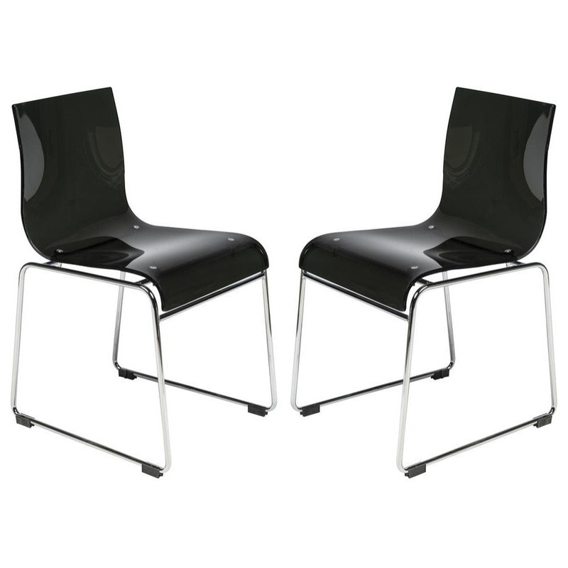 With a chrome-finished steel frame and heavy-duty acrylic seat, these minimalistic chairs are sturdily and dependably built. The seat top is transparent. Included for each chair are four black plastic floor protectors, which also stabilize the chair. Howev