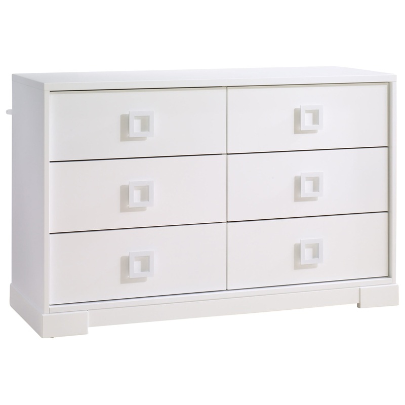 The Lello Double Dresserboasts classic stylewith contemporary accents.This piece's oversized square handles blendseamlesslywith the drawer fronts, and pair perfectly with theunique square molding design on theLello Convertible Crib's headboard. This dresse