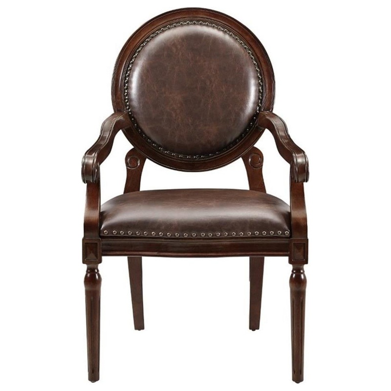 The classical styling of the Aldermont Collection will serve as a timeless statement of your preference for traditional design. The brown finish that graces the wood framing is a perfect complement to the faux leather of the chairs seat and back, as well as the nailhead accent that defines both.