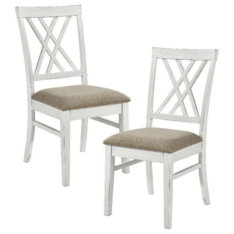 As inviting as a country kitchen, the Brunson Collections charming design is a blend of traditional lines and casual comfort, creating the perfect arrangement for your casual dining room. The white finish over oak veneer is the perfect canvas for your modern farmhouse dcor. The double x-back wood-framed side chair features a neutral tone fabric seat for complementing contrast to the collections finish.