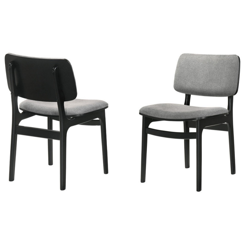 The Armen Living Lima dining chairs feature a strong rubberwood frame and upholstered back and seat. These chairs are great to pull around your dining room table or could easily be incorporated into any room in the house as an accent chair. These are available in a Walnut or Black finish, both with Gray upholstery and ship in a set of 2.