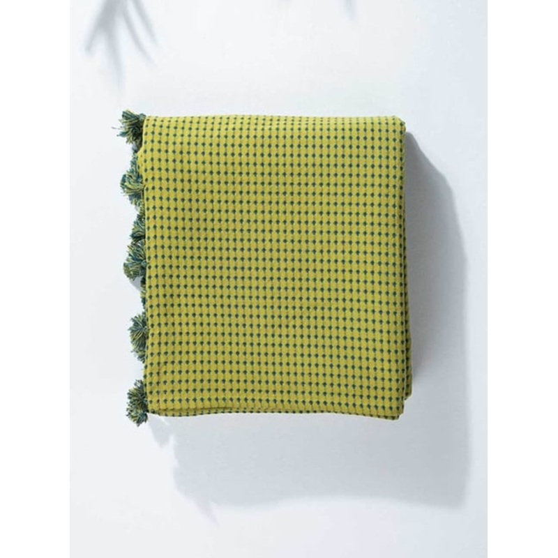 Lime Green Code Shadow Woven Cotton Double Bedcover