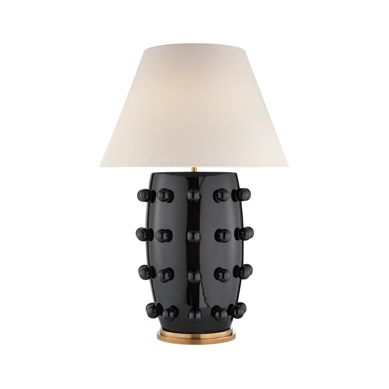 The Linden Table Lamp makes an impression with repetitious decorative spheres on a beautifully sculpted base, creating a playful contrast of fun and sophistication. This fixture features a linen shade, eye-catching metaldetailing and comes inyour choice ofblack or plaster whitebase finishes.Refined yet whimsical, the Linden lamp makes the most of both form and function. The LindenTable Lamp is part of theKelly Wearstler collection.
