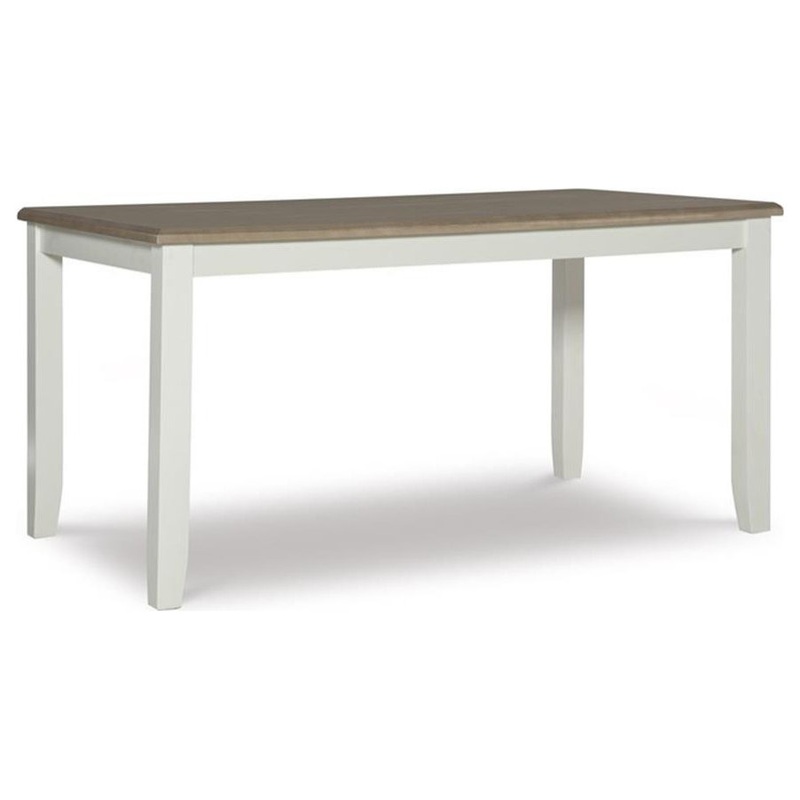 Casual and transitional styling allow this table for six to move into any room dcor country cottage to modern farmhouse. Subtle touches such as the beveled edge of the Rubberwood veneer top, the tapered legs and the play between the rustic taupe top and vanilla white base set this piece apart. Constructed with solid rubberwood for long lasting durability.