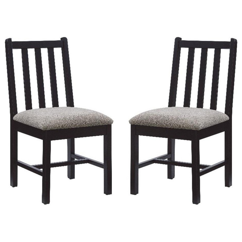 Forget all the overdone frills, bells, and whistles. This humble dining chair is focused on comfort and letting your other decor do the talking. A plush padded seat is upholstered in mottled grey linen look fabric for easy cleaning and resistance to fading. The sturdy beechwood frame features a minimal slat back design in a sleek black finish that fits in with nearly any setting. Made in America and built to last, this set of 2 arrives fully assembled, equipped with foot glides to protect your floors. Commercial Grade