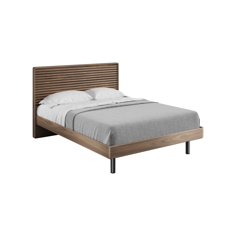 The BDI Cross-Linq Bed offers a sturdy and supportive home for all of your nighttime activities. Concealing an integrated charging station on either side ofthe headboard, this dramaticpiece features a striking, slatted headboard accented by the bed's subtl