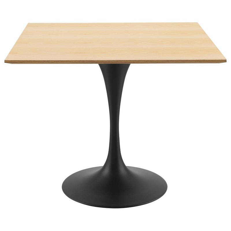 Reflecting a seamless organic shape and timeless form, the Lippa dining table has become a symbol of modernism for over the past 60 years. Before its release, homes were filled with clunky remnants of an industrial age long gone by. But in order to advance into the new world, homes first had to transition from the traditional square table, into a piece that connoted progress. The base and dimensions are true to the original specifications, while the table’s square MDF top has an easy-to-clean wood grain veneer, and the metal tapered base features a black powder-coated finish.