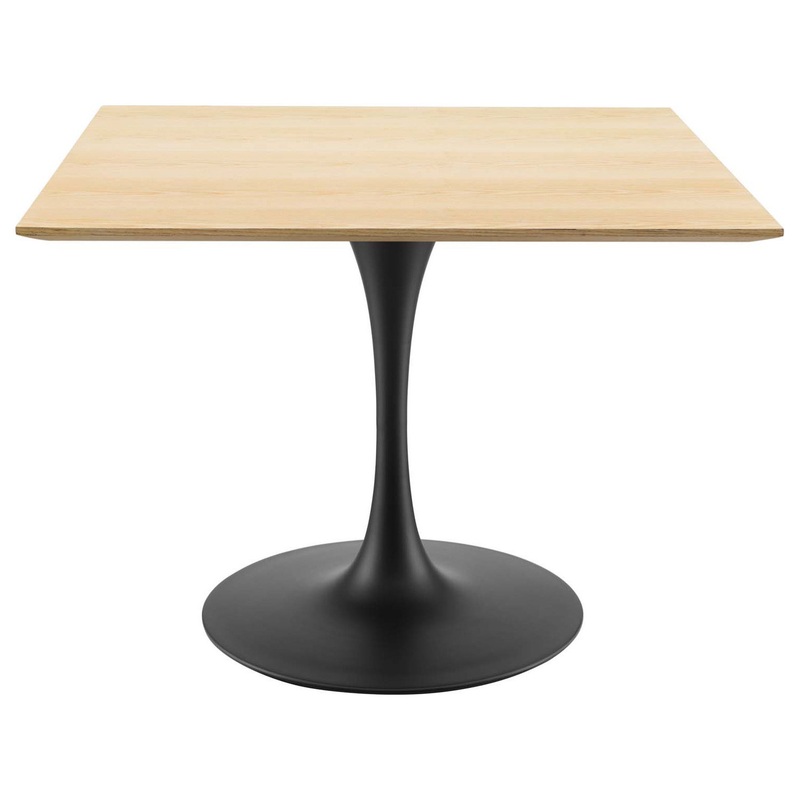 Reflecting a seamless organic shape and timeless form, the Lippa dining table has become a symbol of modernism for over the past 60 years. Before its release, homes were filled with clunky remnants of an industrial age long gone by. But in order to advance into the new world, homes first had to transition from the traditional square table, into a piece that connoted progress. The base and dimensions are true to the original specifications, while the table’s square MDF top has an easy-to-clean wood grain veneer, and the metal tapered base features a black powder-coated finish.