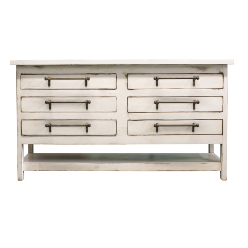 Looking for a classic yet rustic vanity to spruce up your bathroom? Our Logan Farmhouse vanity is a great addition to most any bathroom! Featuring a beautiful hand painted antiqued white finish, this vanity will match most any decor. The custom hardware is solid hand forged steel, oxidized to give a rustic appearance.