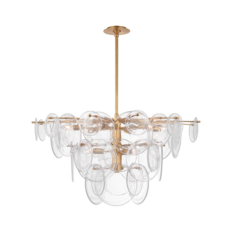 The Loire Large Chandelier features an artful design that brings a touch of creativity to any room. This fixture’sframe holds circular plates of white strie glass in a variety of sizes, which emit a soft and beautiful glow over large spaces. This impressive piece works especially well with contemporary decor. TheLoire Large Chandelier is part of the AERIN collection.
