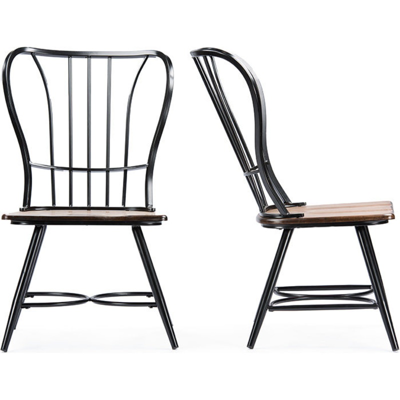 Celebrate your dining experience unfettered via the open feel of our Longford Wood and Metal Vintage Industrial Dining Chair. Ingeniously combining wood and metal construction, this dining chair features a vintage-industrial vibe yet makes a contemporary statement all the same. The-metal vertically-lined back expresses an airiness while the dark-walnut-finished wood seat conveys warmth. Sturdy, stylish and discount-priced, too!