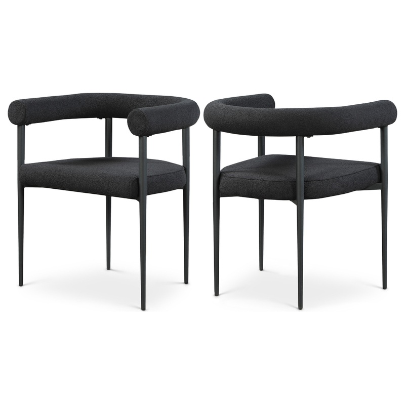 Bring home this Louie boucle fabric dining chair to add a touch of modern fun and sophistication to your space. This dining chair is the perfect addition to your up-to-the-minute dining area, with its curved back and eye-grabbing overall aesthetic. Rich black boucle fabric covers the seat and back, giving it a luxe look. An all-metal frame adds sturdy stability and resilient durability, ensuring lasting use in your home.