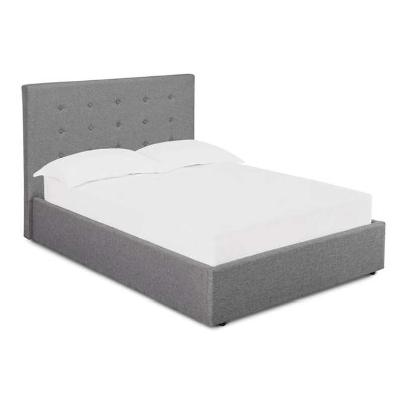 Luxuriously upholstered frameSprung slatted base- for added support and comfortClassic cushioned headboardEnd opening ottoman- opens to reveal ample under bed storage spaceOffering a luxury feel at a comfortable price, the Lucca Upholstered Bed Frame is up