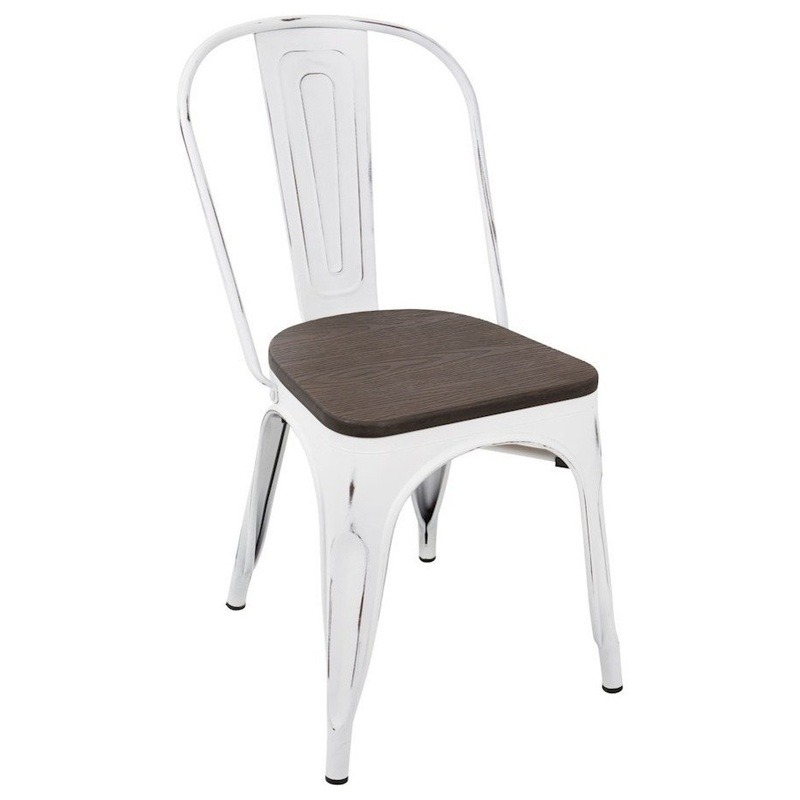 Lumisource Oregon Industrial-Farmhouse Stackable Dining Chair in Vintage White and Espresso - Set of 2 Add a touch of industrial style to your dining area with the Lumisource Oregon Dining Chair. Featuring clean lines and rustic elements, the Oregon Dining