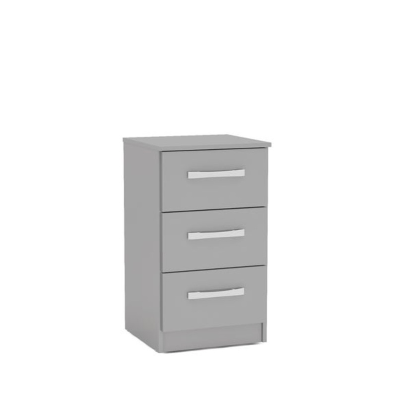 Gloss finishSilver finish handlesTimeless and simple, yet stylish. The Lynx is sure to stick around for years to come thanks to its adaptable and low-key design. With three spacious drawers, you can rest easy knowing everything you might need in the night