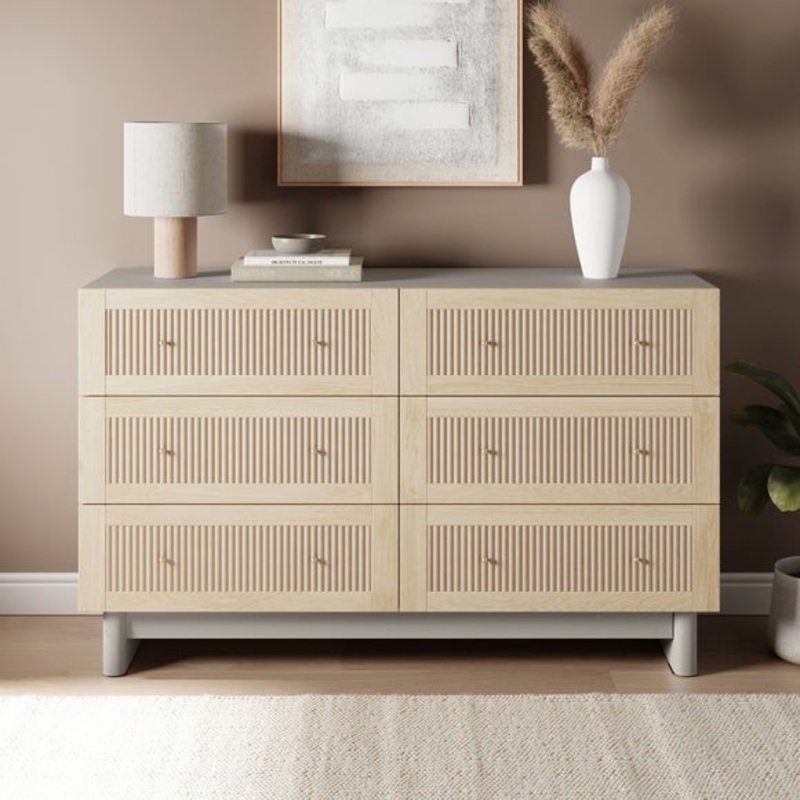 Light Oak effect6 large drawersGold handlesOff-white frameWith a solid design and stable construction, this chest ensures long-lasting durability. The six large drawers provide extensive storage space, perfect for keeping your clothes, accessories, and oth