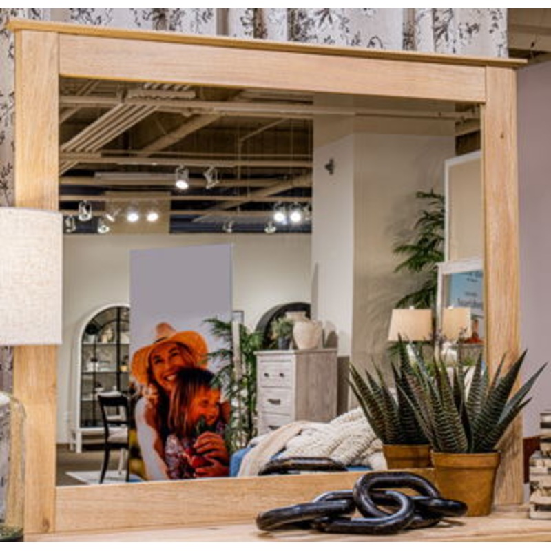 Looking to create a bedroom that feels airy and beautifully put together? This casually fuss-free bedroom mirror is your perfect solution. Its clean lines, replicated oak grain and on-trend finish exude a charming cottage-inspired feel that brightens your restful retreat. This versatile piece can be mounted on a wall or on the matching dresser (sold separately). Now theres a fresh take on country living we can get behind.