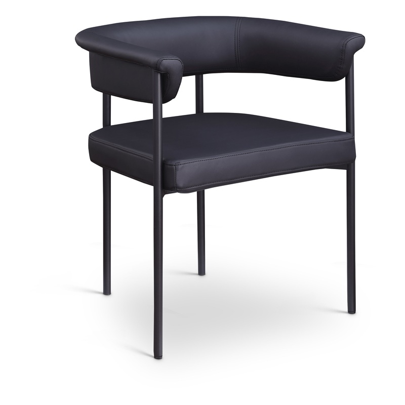 Guests feel comfortable for the whole meal when they're seated in this impressive Malin black vegan leather dining chair. Its contemporary design effortlessly combines elegance with durability, making it a versatile addition to any dining setting. Perfect