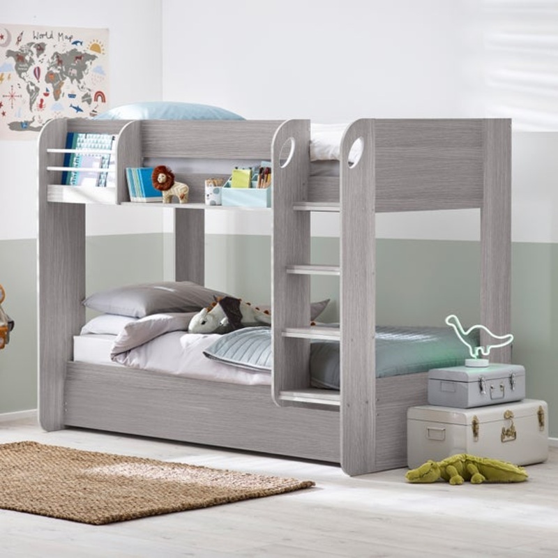 Beautifully designed with a convenient pull-out trundle, this bed frame provides extra sleeping space for guests or sleepovers without compromising on room space. Solidly crafted, this bed ensures the safety and durability needed for your childrens peace of mind. Finished in a sophisticated grey oak effect, it seamlessly complements a variety of room styles.