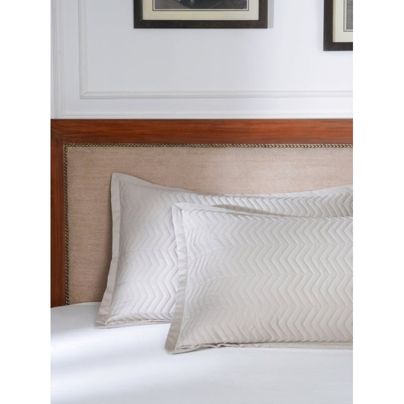 A chevron patterned quilted pillow sham with texture lends a graceful look to any bedroom.