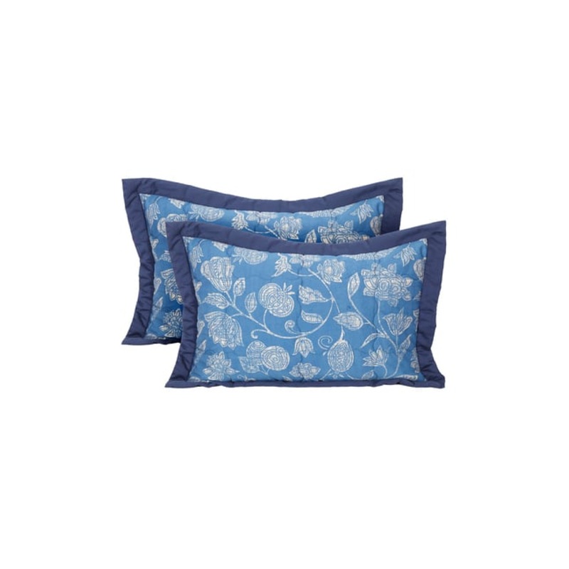 Create a zestful aura in your space with this blue and white pillow sham from the Flamboyance collection by Maspar. Showcasing floral print, this pillow sham will bring class to your room. Fabricated using 100 percent cotton with 100 percent polyester filling, this pillow sham is long lasting and will be an ideal snuggle adjunct for all intimate gatherings. It comes in a set of 2.