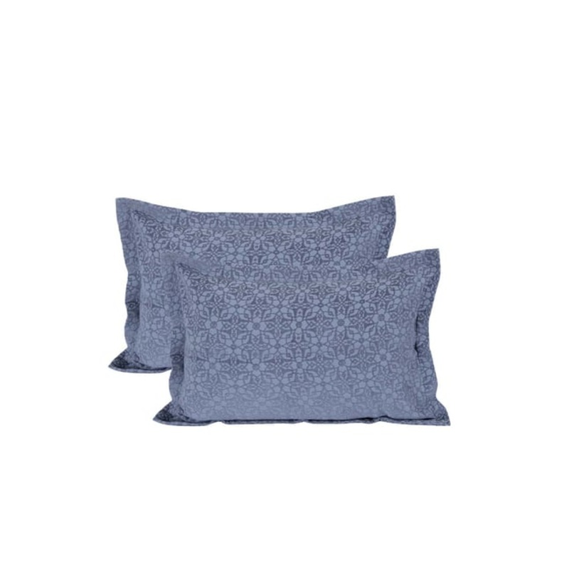 Transform the decor of your bedroom with this blue set of 2 queen-size pillow covers from the Fretwork collection by Maspar. These have been crafted to perfection from 85 percent viscose and 15 percent cotton in sateen weave and will surely magnify the look of your bedroom. The self pattern lends these a finial touch.