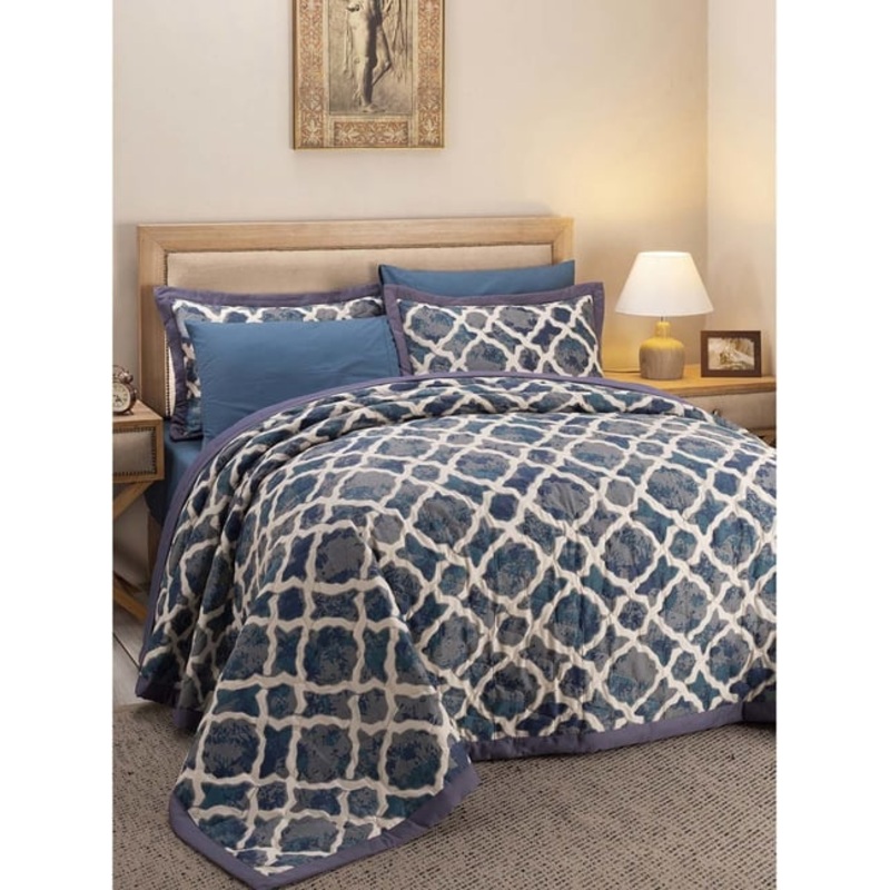 This set of 1 quilt from Maspar showcases linear designs and elegant silhouettes. Among other characteristics, this set’s inspiration is the fusion of ethnic style with the color and styling of bold designs to pop up the bedroom with a strong essence of traditional art. It has been crafted in premium quality cotton with a 300 TC.