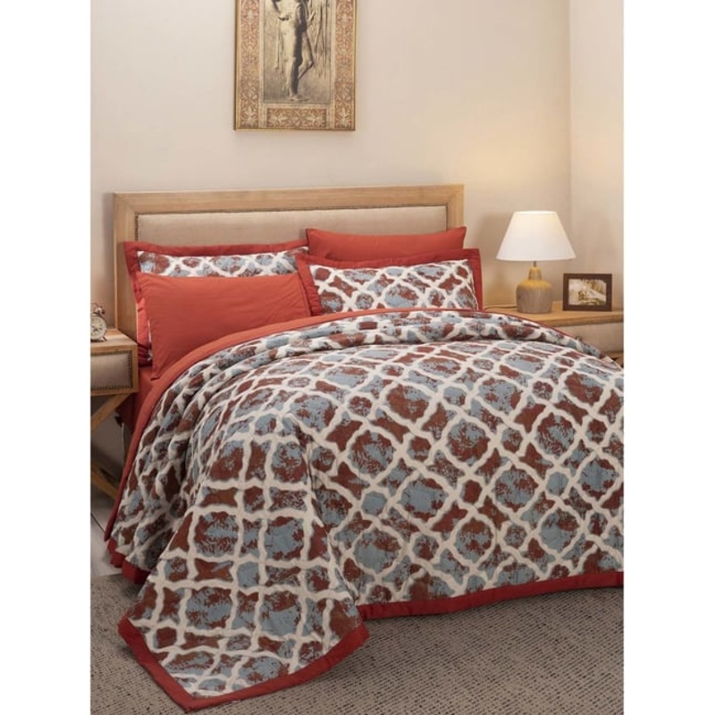 This set of 1 quilt from Maspar showcases linear designs and elegant silhouettes. Among other characteristics, this set’s inspiration is the fusion of ethnic style with the color and styling of bold designs to pop up the bedroom with a strong essence of traditional art. It has been crafted in premium quality cotton with a 300 TC.