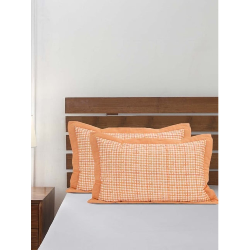 Maspar Orange Cotton 115 TC Pillow Shams – Set of 2