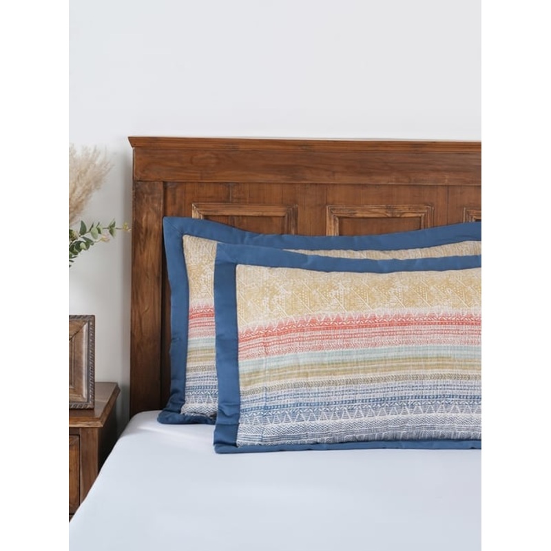 Maspar Quilted Red Cotton Standard Pillow Sham Set