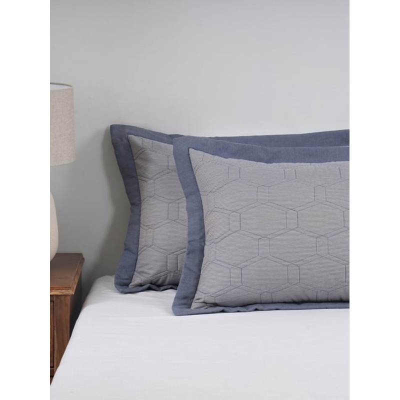 The M lange Quilted Pinstripe Pillow Sham Set merges classic design with luxurious comfort. Featuring an elegant pinstripe pattern, each sham is enhanced by a sophisticated quilted texture that adds depth and dimension.