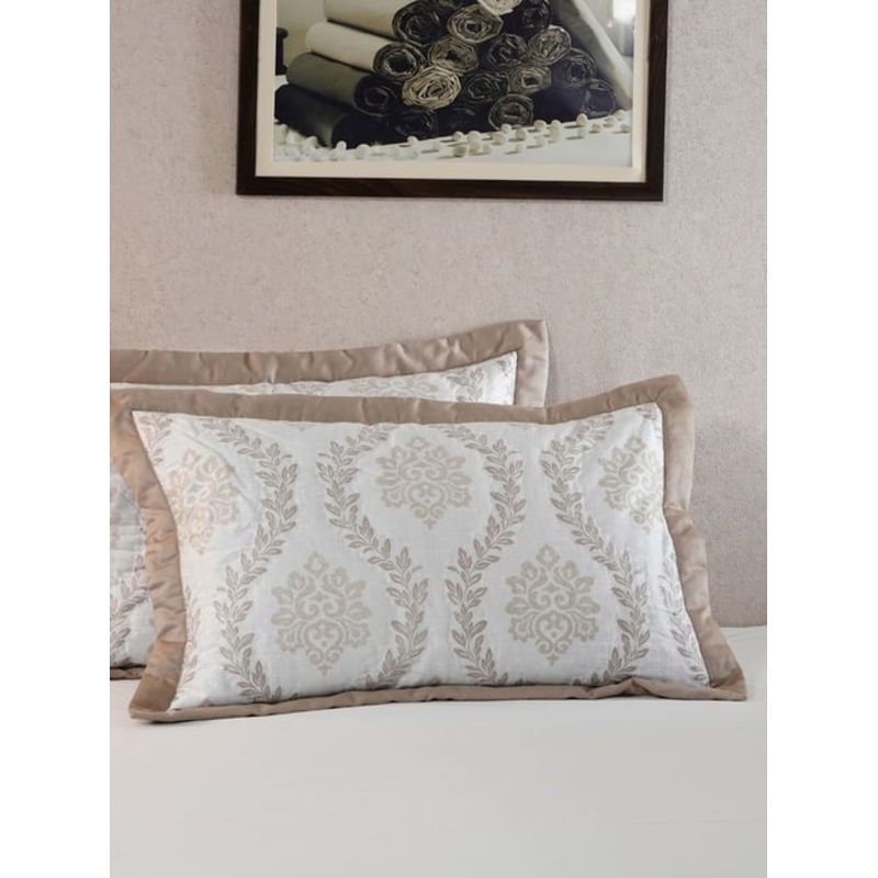 Maspar Tranquil Essence Lawn Leaflet Quilted Beige Cotton Standard Size Pillow Sham – Set of 2