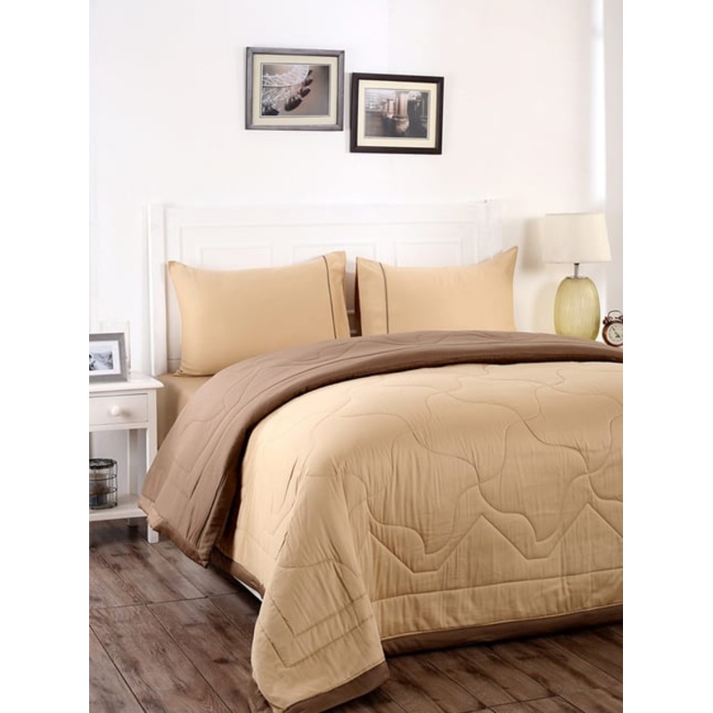 Enliven your bedroom with this brown quilt from Maspar. Crafted with care using superior quality cotton with a fabric quality of 240 TC, it gives a soft feel. This quilt with a stitched pattern will create a zestful aura in your room. The high-quality fillers are sure to surround you with a warm embrace and are safely ensconced in quality cover that gently yields to your touch. It brings to you warmth, joy and luxury. The set contains 1 double size quilt.