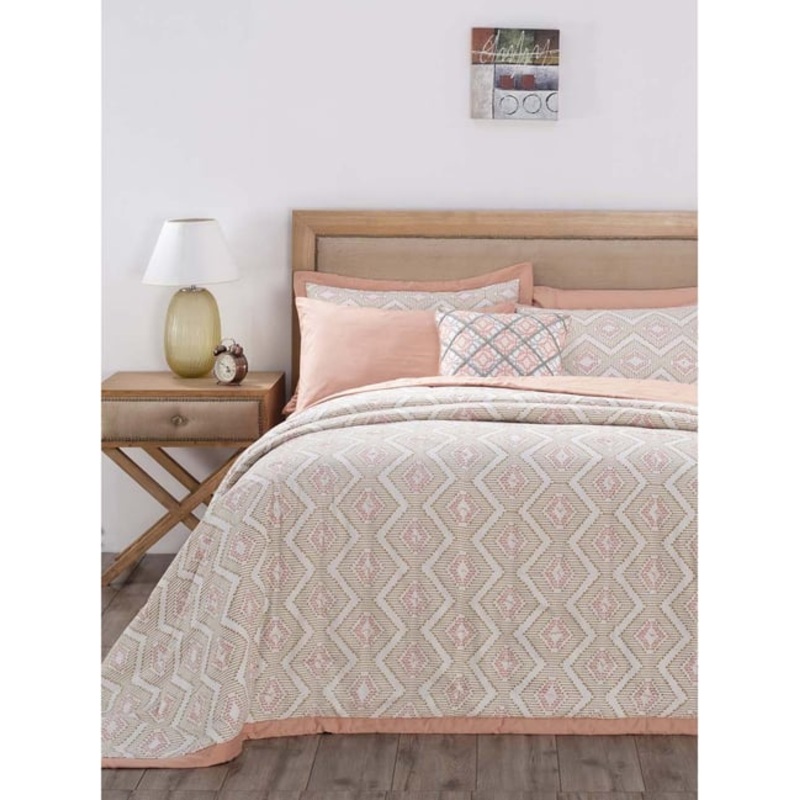 Maspar White & Peach 100% Cotton 210 TC Double Quilt Set