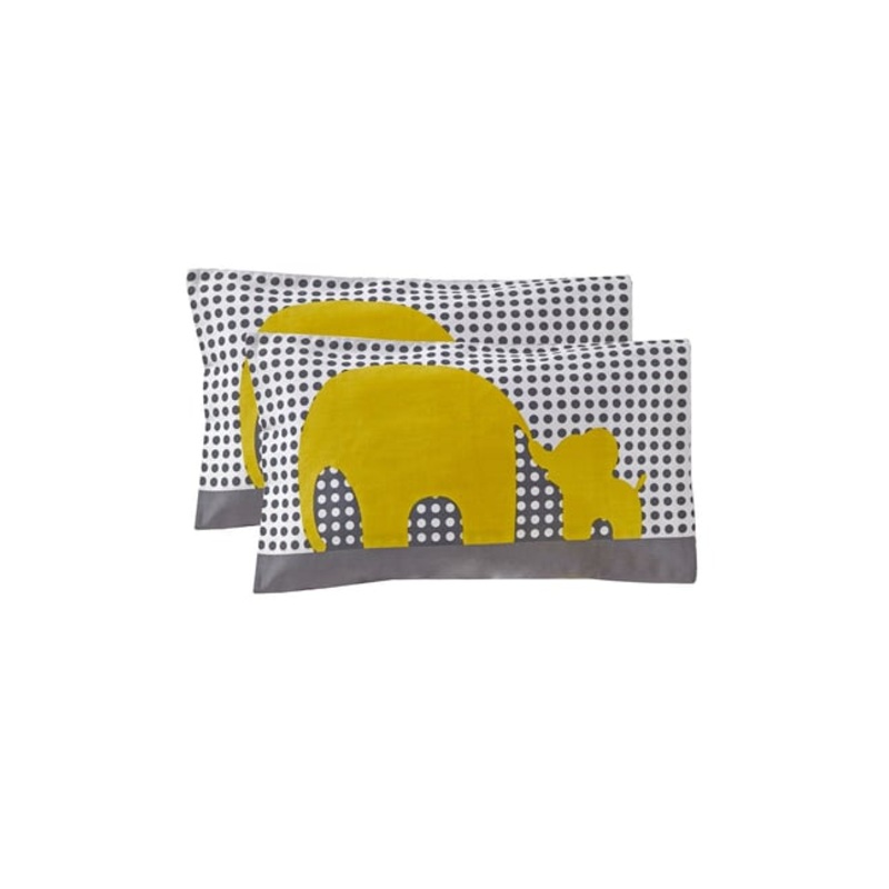 Lend a royal look to your bedroom with this yellow and dark grey pillow sham from the Zoo Keeper collection by Maspar. Decorated with a dotted pattern, this pillow sham will give your room a rich look in no time. Tailored using premium quality cotton, this king sized pillow sham comes with a flange attached to it. It comes in a pack of 2. It comes in a set of 2.