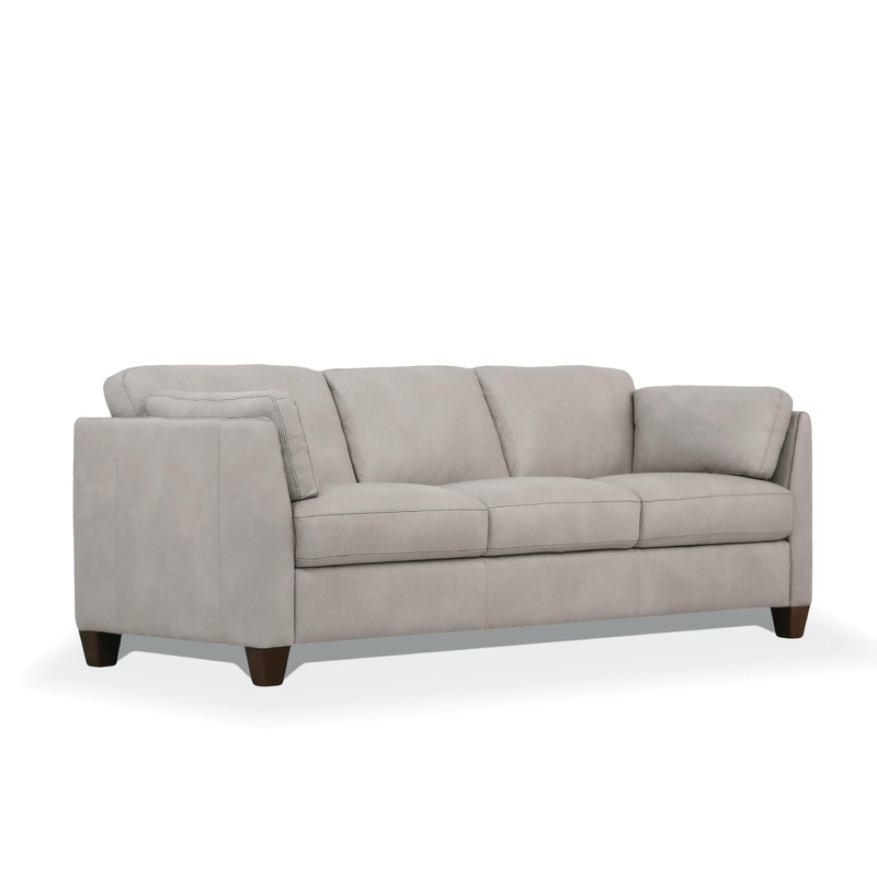 ACME Matias Sofa, Dusty White Leather, 81"L x 34"D x 31"H, 121lbs. The Matias sofa set is one you-ll want to spend lots of time in. This beautiful dusty white or chocolate leather sofa features contrast tone stitching and unique wooden block legs. Its deep