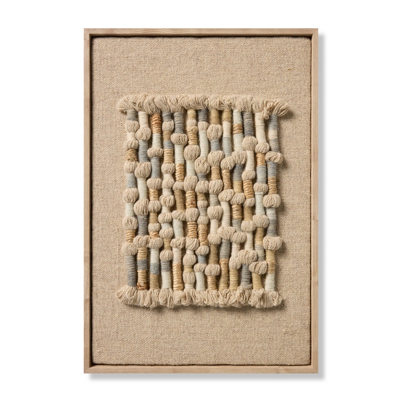 Maverick wall art features a fringed textile made of thick, interwoven jute and colorful wool yarns that adds natural texture to many home decor styles, from organic to farmhouse. The artwork is handmade in India of jute and wool and custom framed by Loloi in the USA, measuring 29 x 20.