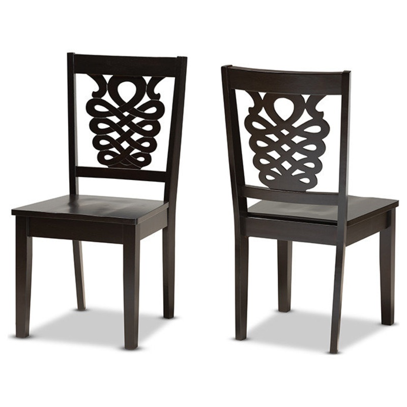 Imbue your dining space with the elegance of the finely crafted Mazur dining chair. Made in Malaysia, the Mazur is comprised of a sturdy wood frame showcasing a rich dark brown finish. A smooth scoop seat provides a casual and comfortable dining experience. Requiring assembly, the backrest showcases a striking geometric design for added visual appeal. Straight legs add a touch of sleek, contemporary style, making the Mazur dining chair an excellent addition to the modern home.