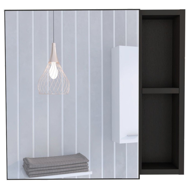 Viking Medicine Cabinet, whoever said that you couldn’t have form and function in your bathroom? With the Viking cabinet, you get both. This stylish and modern cabinet is perfect for adding extra storage to your bathroom without sacrificing any style. Plus, the unique design with black manufactured wood is sure to impress guests. Includes an ample mirror in the single door Cabinet (13,7”W X 18”H), two external shelves (4,1”W X 7,9”h X 8,4”H), and a superior top (20,4”). Designed with an elegant Black manufactured wood finish.