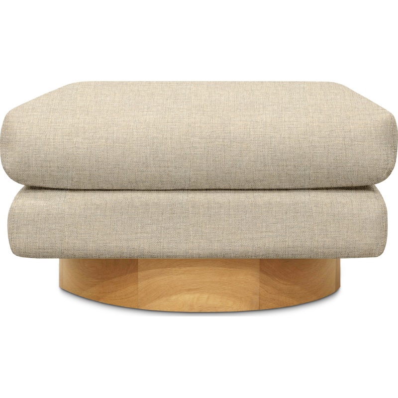 Add extra comfort to the Mesa Collection (2016) with this inviting ottoman. Its low profile, layered cushions, and wide proportions create an elegant footstool or seat. Choose from a range of high-quality fabrics, including tactile weaves, rich velvets, and sturdy blends that invite touch and enhance comfort. An elegant walnut or oak block base brings it all together. Made in Mexico.