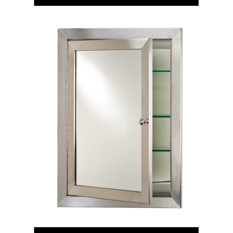 Stainless Steel Medicine Cabinet. Adjustable 3/8" Tempered Glass Shelves. Clean Contemporary look. Polished or Brushed finishes. Recessed Wall Opening 22" X 28". Optional Surface Mount Kit available #MSK-MET-L Model # (MPN)MET-S-LProduct ID92324907Manufact