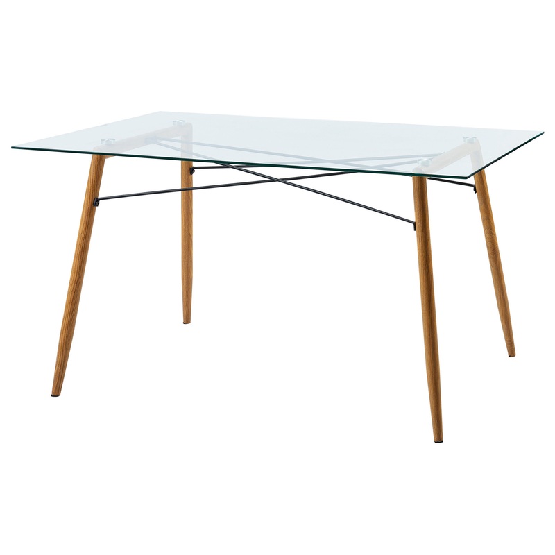 Create a minimalist atmosphere in your home’s dining area with the Teamson Home Minimalist Glass Top Dining Table with Wood Base. Featuring a contemporary design with a minimalist glass table top and a natural base with tapered wood legs and black supports, this modern table is a stylish update to any dining space. The tempered glass top of this dining table is durable and scratch resistant to stay looking great over time. Included leg levelers make sure this table has a stable surface regardless of the space it’s in for safe, dependable use. Purchase this kitchen table on its on own or with our high-quality Minimalist dining chairs for a complete dining set. For quick and easy assembly, this table includes step-by-step instructions. Measuring 55.12″ x 31.5″ x 30\
