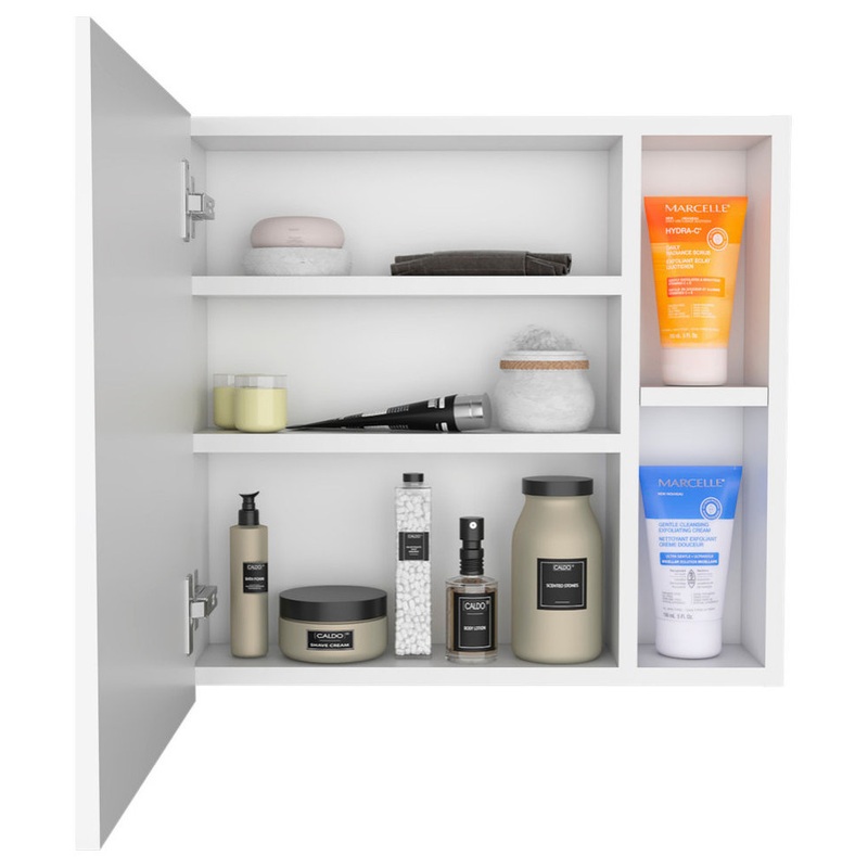 -Includes a ample mirror in the One-door Cabinet (13,7”Wx18”H), two external shelves (4,1”Wx7,9”hx8,4”H) and countertop size (20,4”)