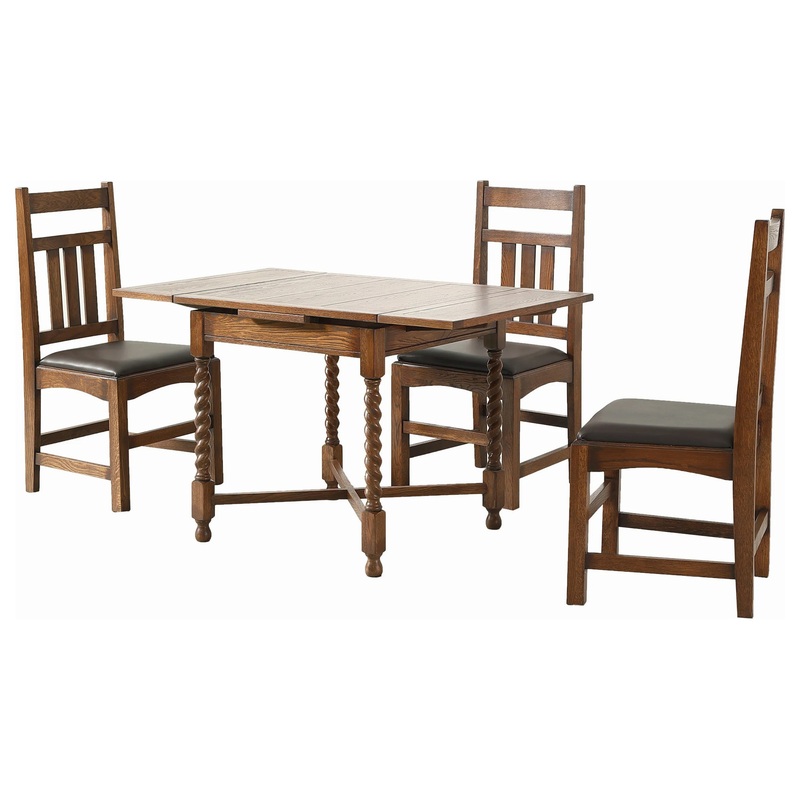 Our Mission / Arts & Crafts style furniture is made with attention to detail and expertise like that of 100 year old Stickley. -Solid oak -Dark Walnut stain with a hand rubbed finish -2 Self Storing Leaves -Great game table or dining table for small spaces