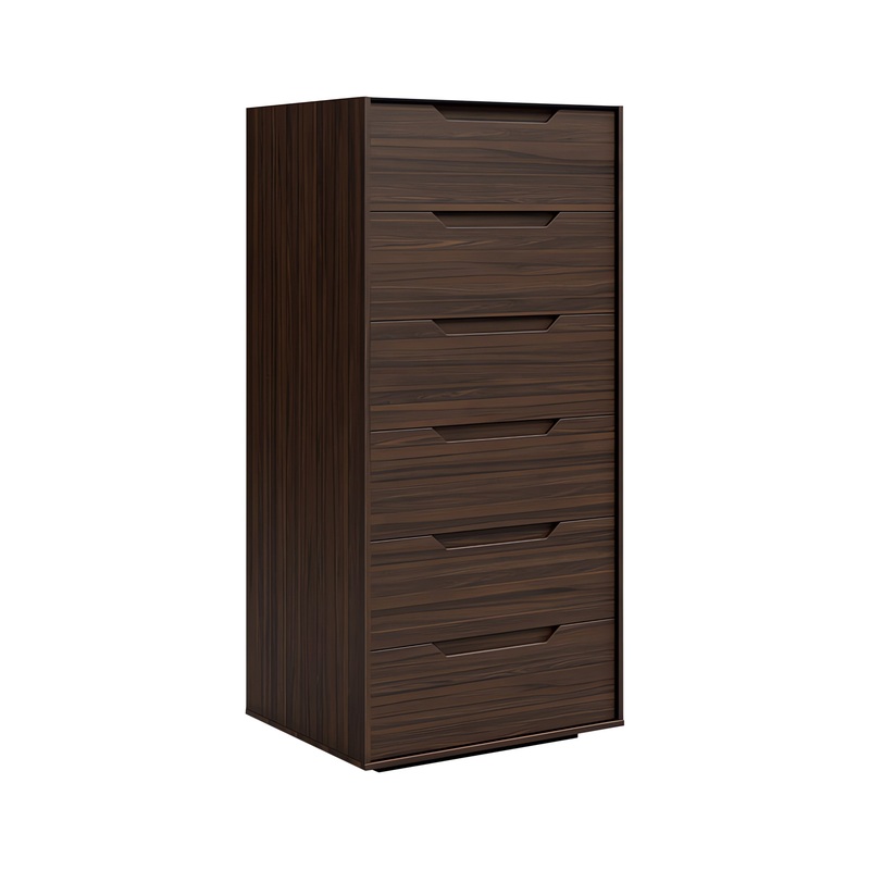 The Mobican Alexia Narrow Chest boasts a contemporary style, exuding luxury through minimalistic, simple lines. The Alexia is made in Canada from oak or walnut with quality veneers. Available with your choice of 3 glass colours or porcelain for the top surface. This piece has 6 spacious drawers with unique finger groove handles lending additional character.