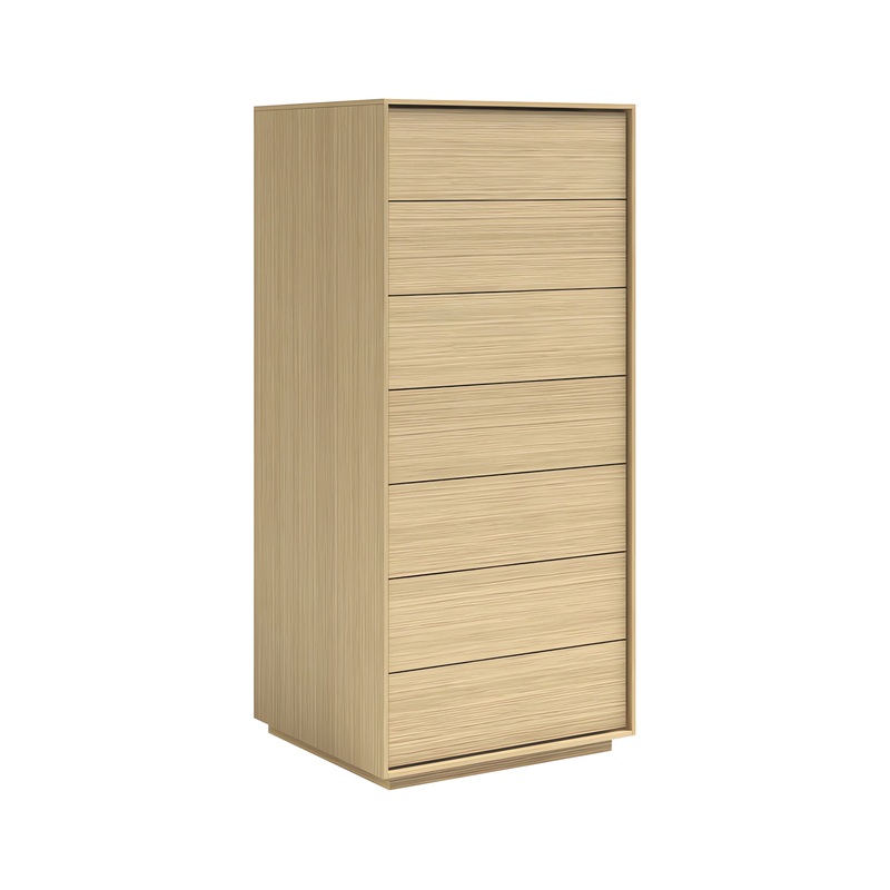 The Mobican Azura Narrow Chest is an understated storage piece featuring a Scandinavian-inspired design. The Azura is handcrafted by skilled Canadian artisans, incorporating 7 drawers mounted on push to open slides. This piece is available with an optional finished back at your discretion. Elevate any bedroom with the Azura Narrow Chest’s winning combination of ample storage and contemporary style.