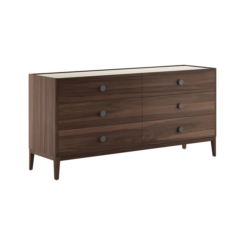 The Mobican Ema Double Dresser is a visually stunning storage piece that offers impressive functionality and the charm of mixed materials.The Ema is crafted in Canada from oak or walnut and quality veneers, featuring 6 soft close drawers with LED lighting