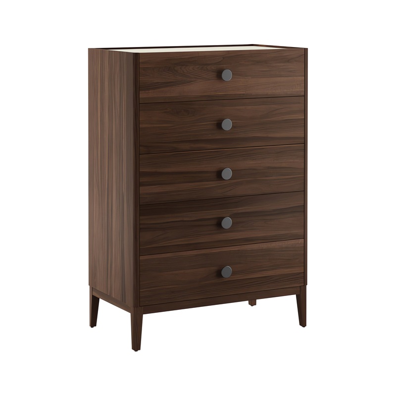 The Mobican Ema High Chest offers the perfect blend of style and function. The Ema is made in Canada from oak or walnut with book matched veneers, incorporating 5 drawers mounted on smooth European soft close slides. Adjustable levellers are included under
